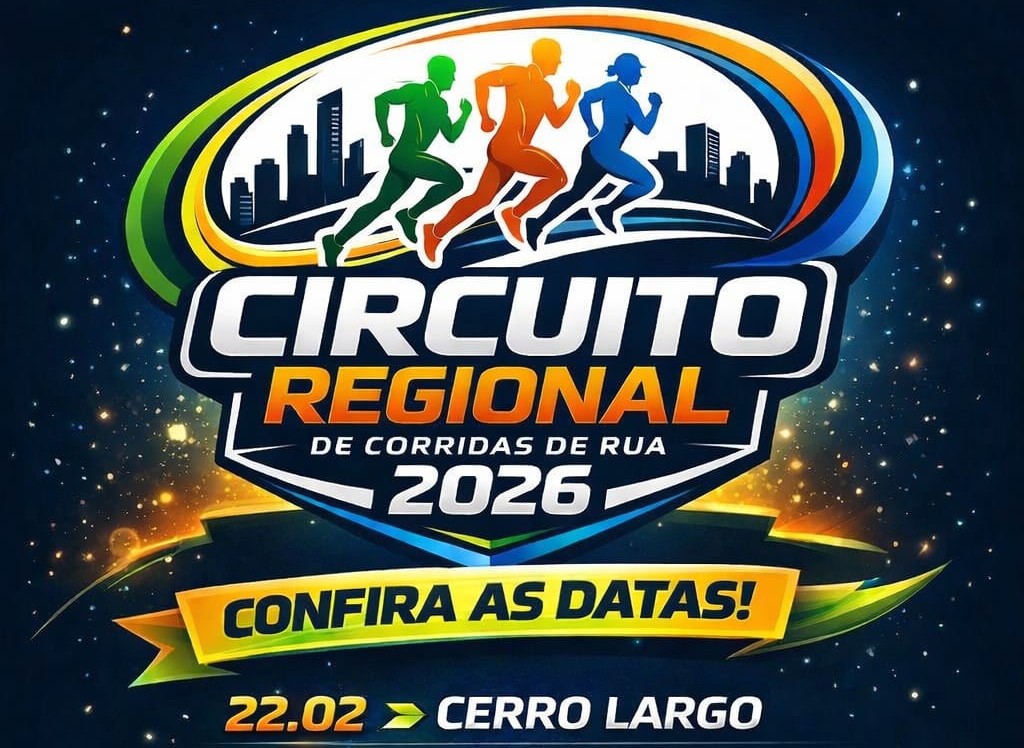 Cerro Largo (RS) será palco de mais uma etapa do Circuito Regional de Corridas de Rua 2026 no domingo, 22 de fevereiro, com largada às 8h, em frente à Prefeitura Municipal. O evento contará com percursos de 400 metros, 600 metros, 2 km e 5 km, abrangendo categorias mirim, estudantil, adulto, livre e especial.